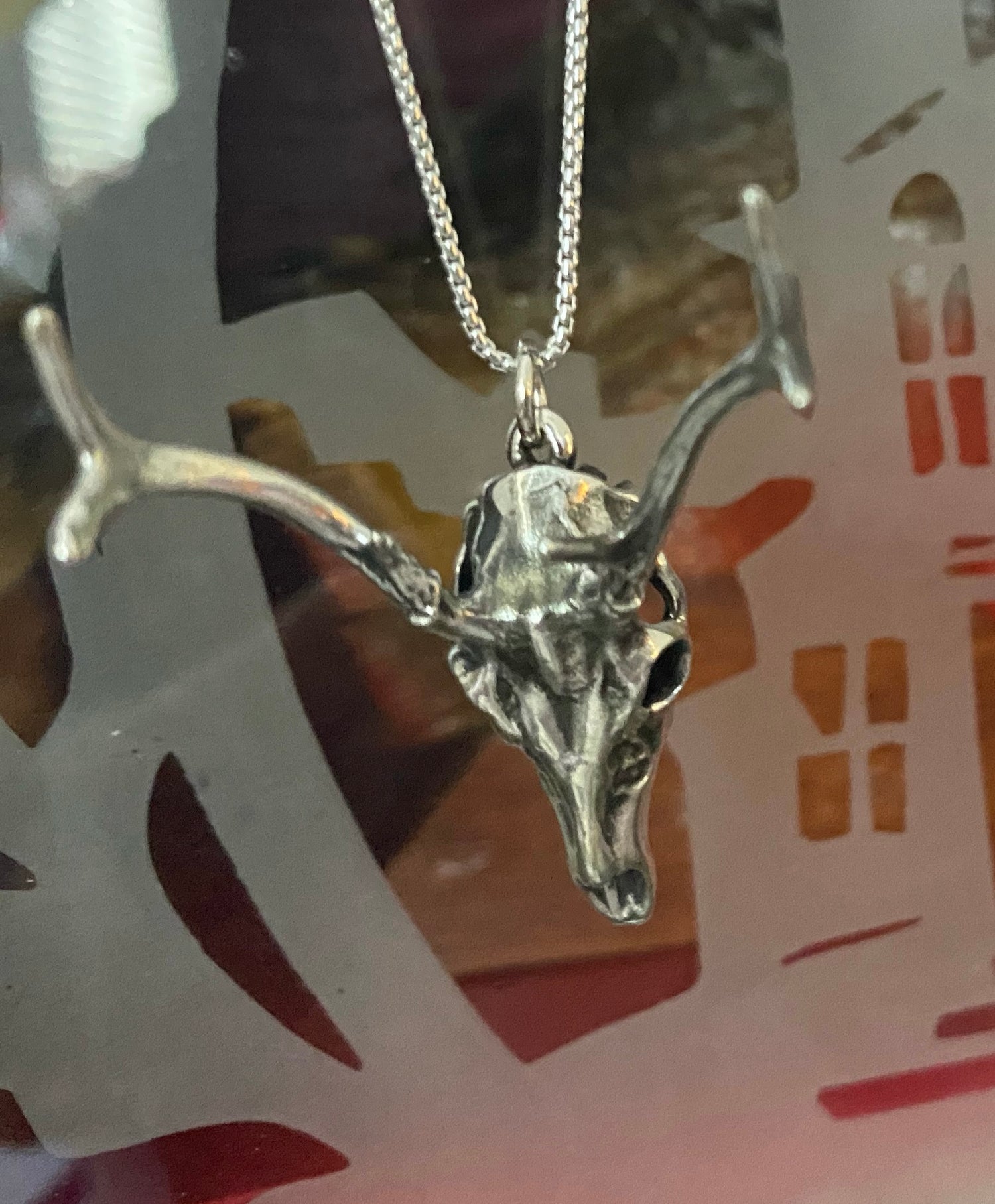 Cast in sterling silver from the skull of a Merino Ram, this phenomenal piece from Fire & Bone invokes the strength of it's subject in a perfect relief. Paired with a 24" sterling silver necklace and display stand. This necklace will keep one centered on obstacles ahead and help tap into forgotten strengths.